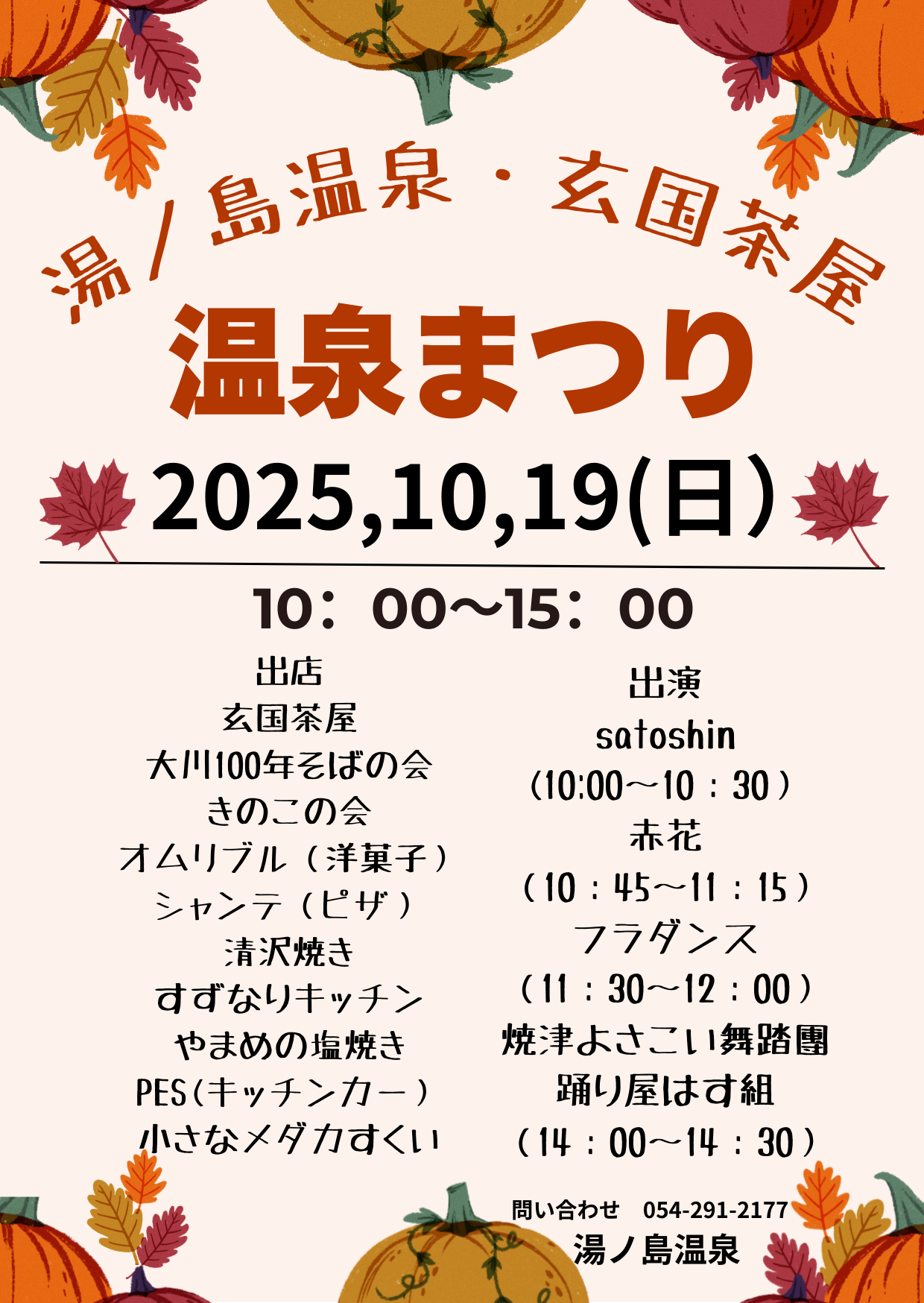 ご無沙汰しております😊湯ノ島温泉です!オクシズも朝晩は涼しくなりました。湯ノ島温泉まつり開催です!皆さん是非お越し下さいませ🤗